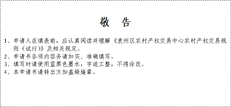 5、已知悉贵中心的交易规则,并充分理解和认可,同意按照贵中心《袁州区农村产权交易中心农村产权交易规则(试行)》等相关规定实施农村产权流转交易活动;
